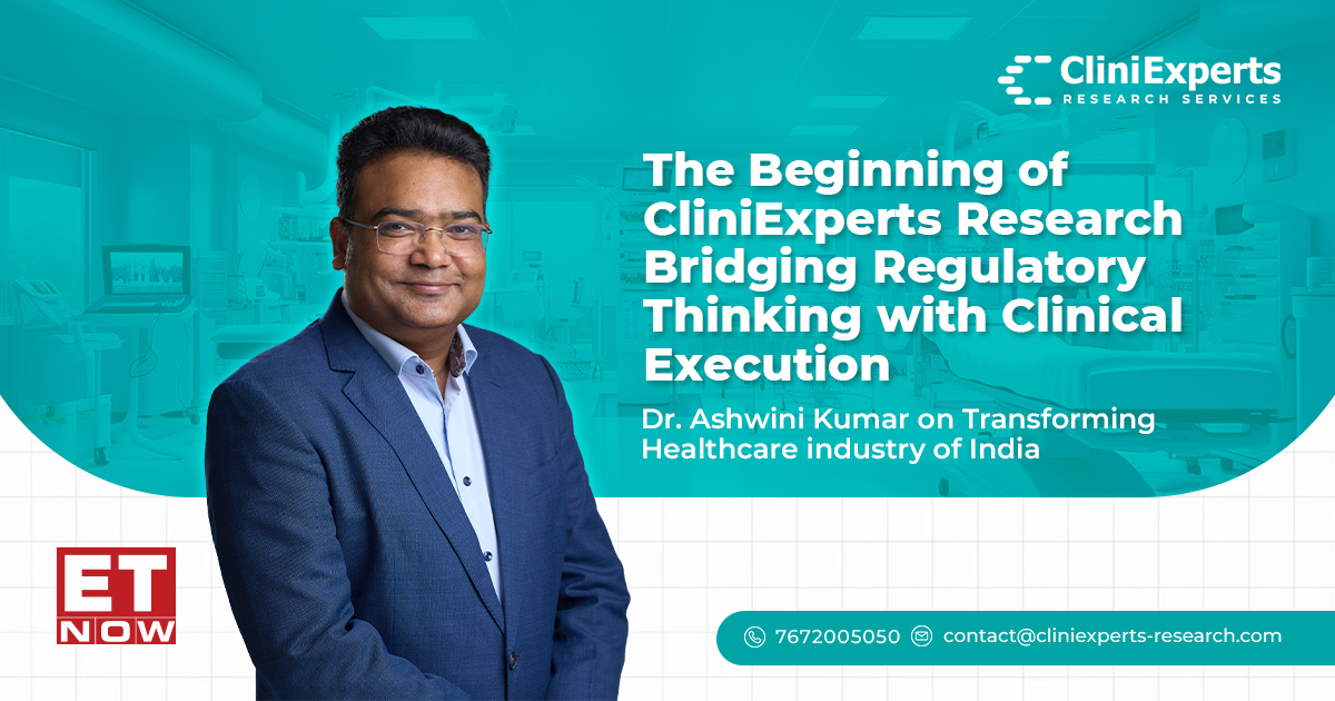 Dr. Ashwini Kumar, Founder & CEO, was featured on ET NOW, sharing our journey, vision, and approach to regulatory and clinical research. Watch the full story and learn how we are simplifying complexity in healthcare